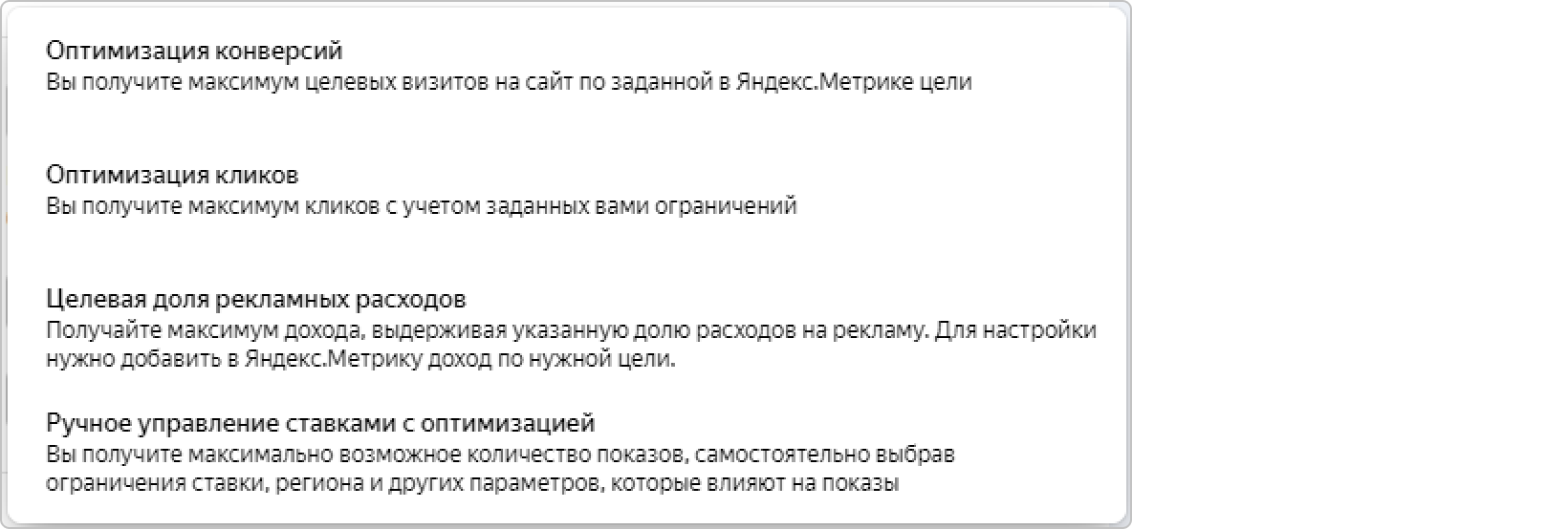 Стратегия управления ставками — это набор настроек, которые позволяют решить задачу рекламной кампании, например привлечь трафик на сайт, получить максимум полезных действий или оптимизировать рентабельность.