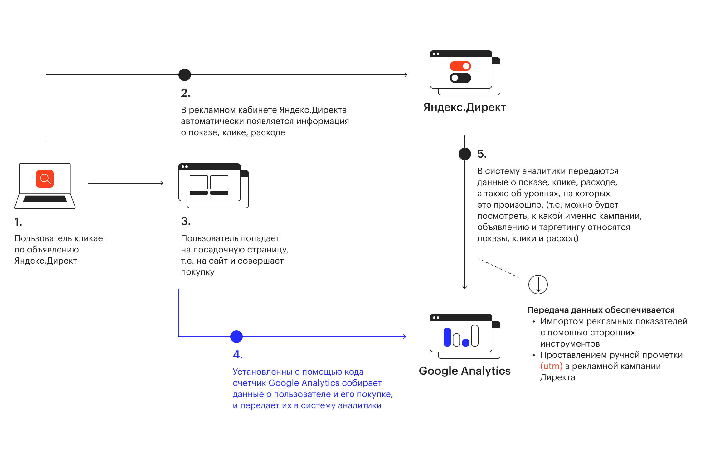 Передача данных в чужую аналитику также состоит из двух шагов: