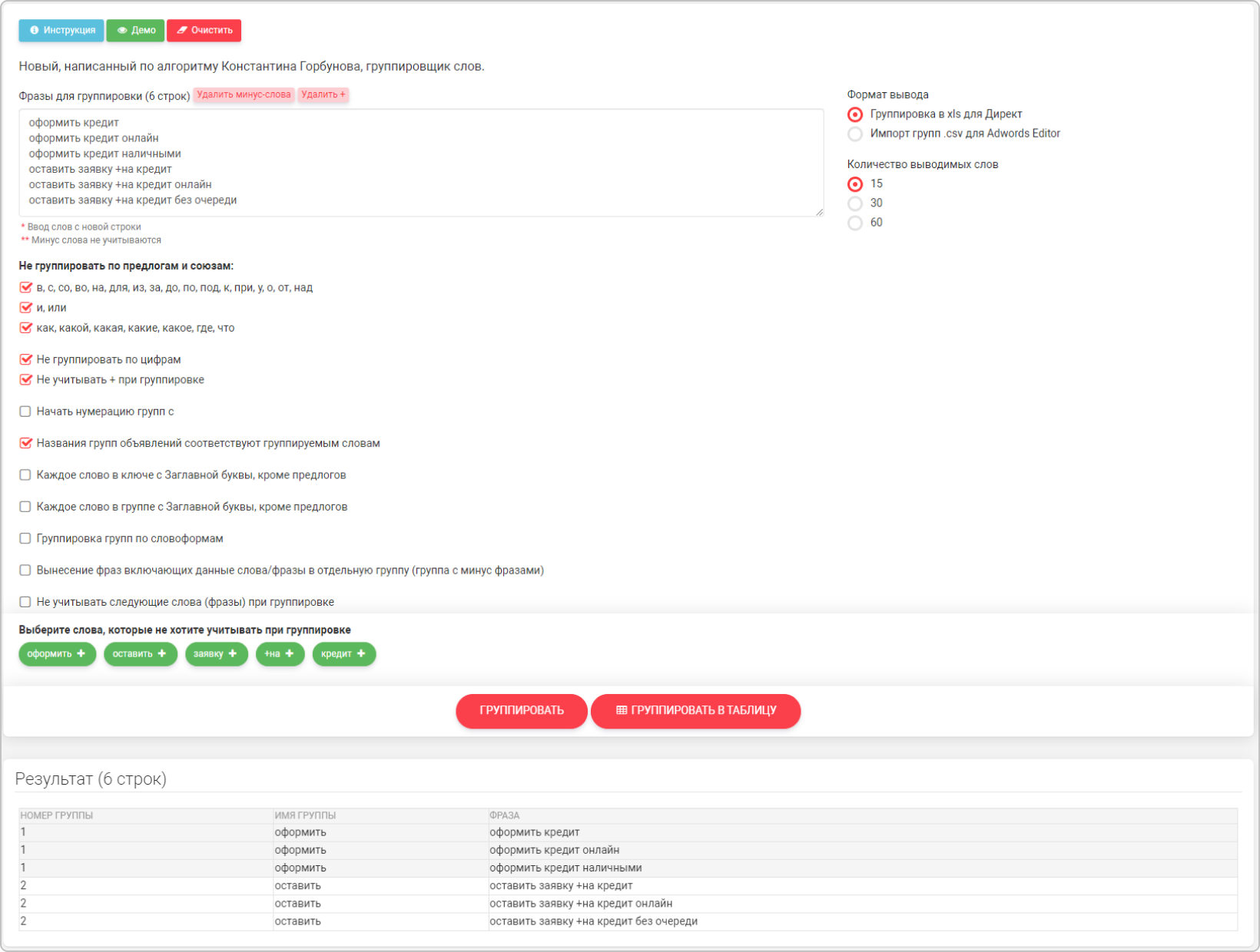 2. Можно не группировать ключи, и каждый из них положить в отдельную группу объявлений. В данном случае под каждый ключ можно будет написать индивидуальный и максимально релевантный заголовок, а также подобрать посадку.