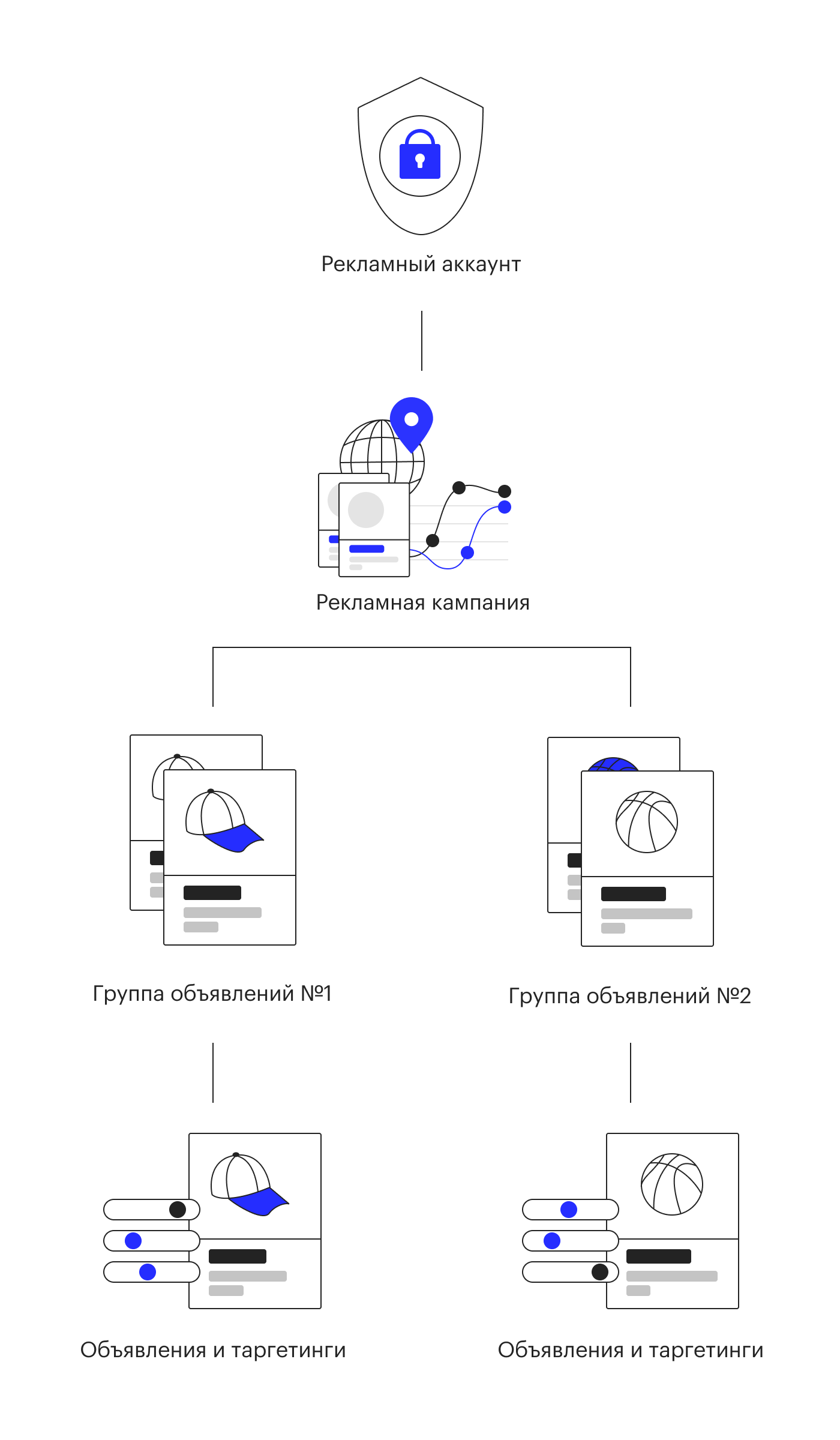 этом курсе изучаются рекламные кампании на основе ключевых слов, поэтому таргетингами в данном случае являются именно они. Представим, что мы собрали 6 ключей для кампании по кредитам