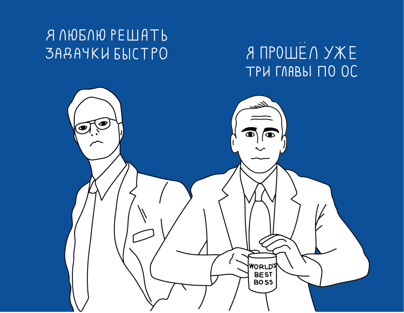 У нас два героя: Никита и Алик. Никита — middle проджект группы, любит быстро решать задачки от руководителя. Алик — его GН. Прошел уже три главы курса по ОС