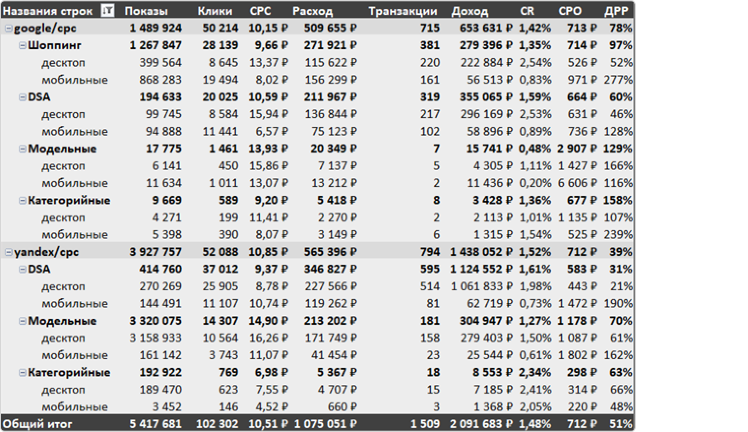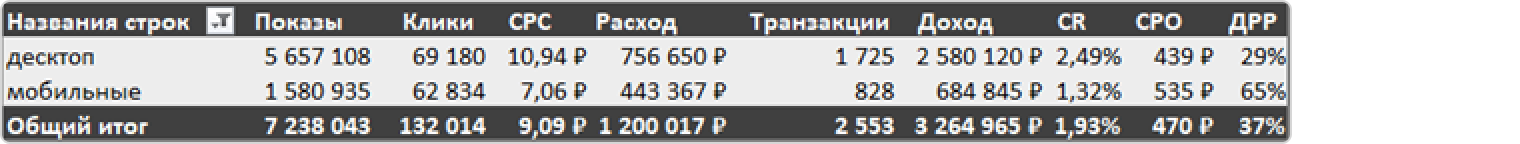 У РК №2 выше потенциал к росту, поскольку большая часть показов приходится не на спецразмещение