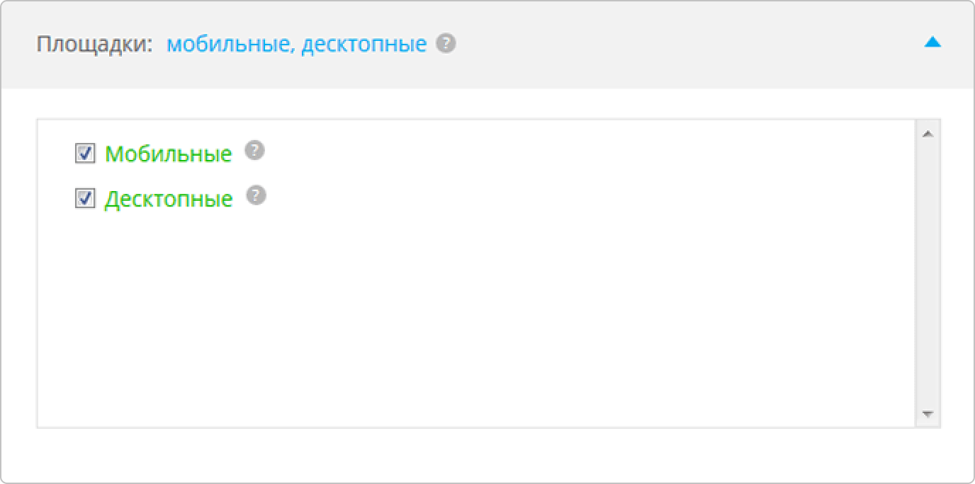 Также возможно выбрать, показываться на всех устройствах или только на десктопных/мобильных.
