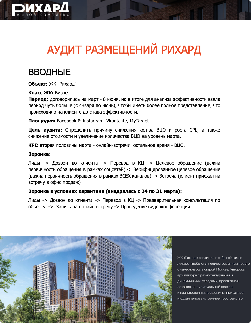 Сразу определим, где берём цифры для аудита — конечно же с площадок и систем аналитики. Если вы не получили никакой отчётности по продукту (даже если получили, советуем всю полученную информацию перепроверять и не полениться пересобрать отчёт самому) всегда есть возможность собрать статистику в нужных для вашего аудита разрезах (например, вы видите проседание по целевым действиям в разрезе месяца, можно собрать подробную статистику по дням и компаниям и увидеть в какую сторону «копать» дальше).