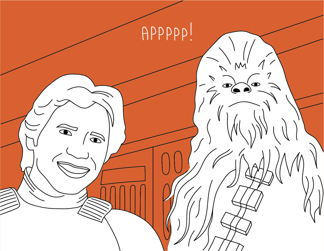 Хан Соло только что снял шлем штурмовика (исполнителя), и теперь он может на равных коммуницировать с Чубаккой в роли партнера